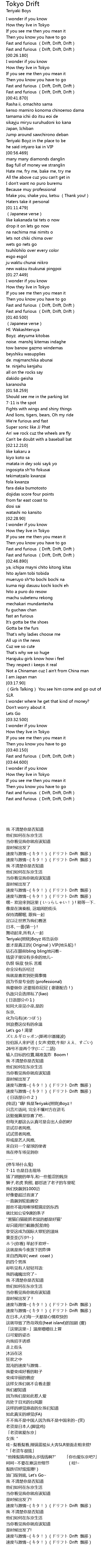 | [00:17.540] | Fast and furious Drift, Drift, Drift |