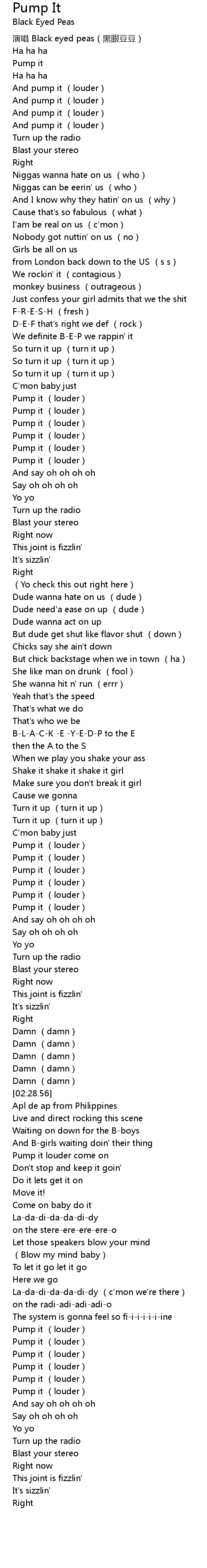 | [00:00.97] | yǎn chàng Black eyed peas hēi yǎn dòu dòu |