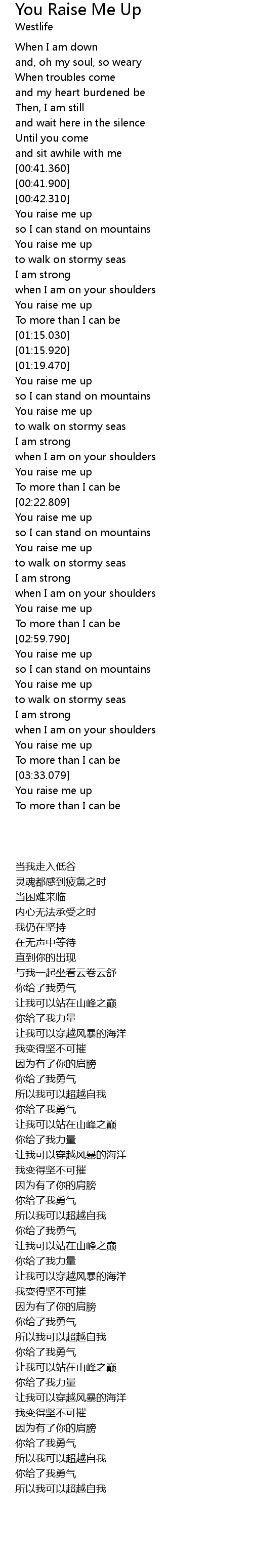 | [01:57.379] | You raise me up |