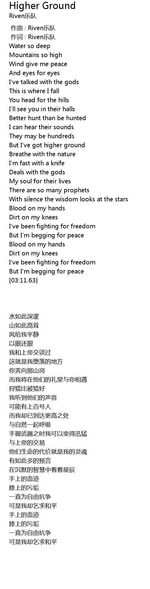 | [01:36.56] | But I' ve got higher ground |