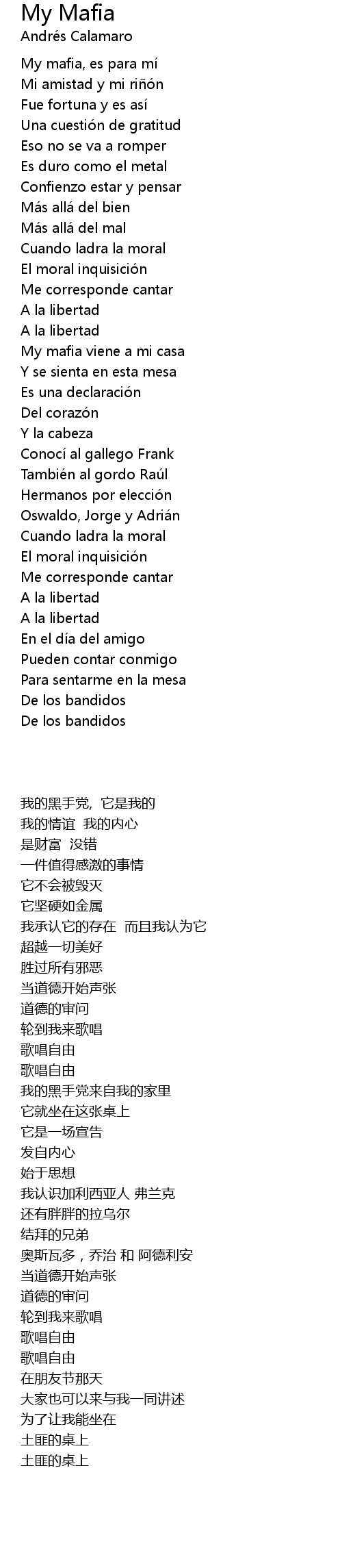 | [01:36.83] | My mafia viene a mi casa |