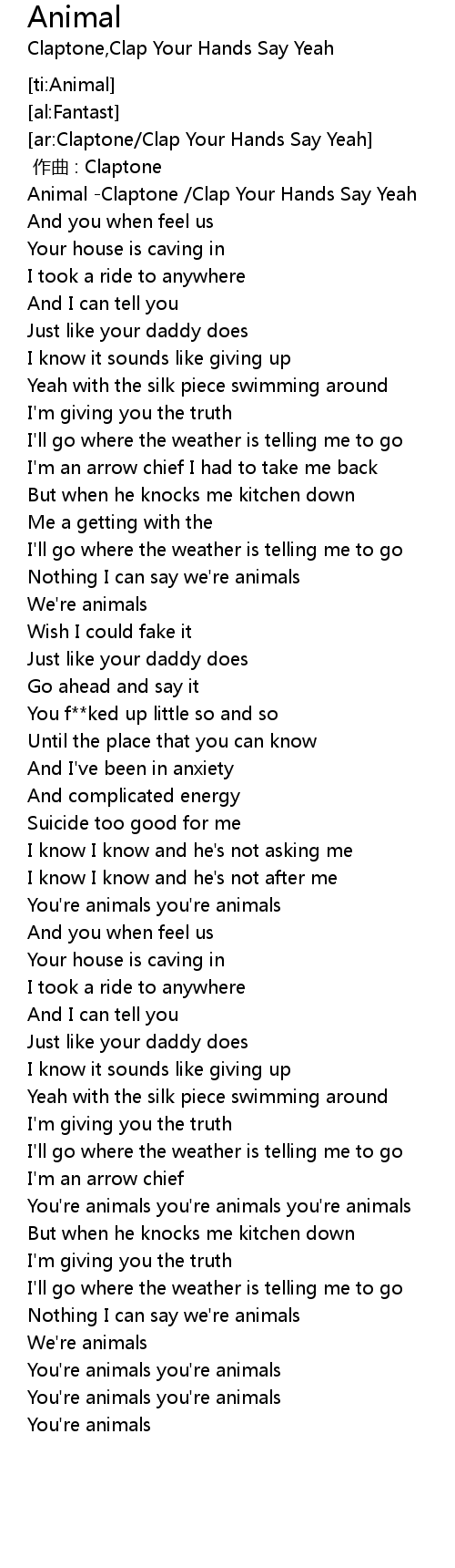 | [00:00.00] | Animal Claptone Clap Your Hands Say Yeah |