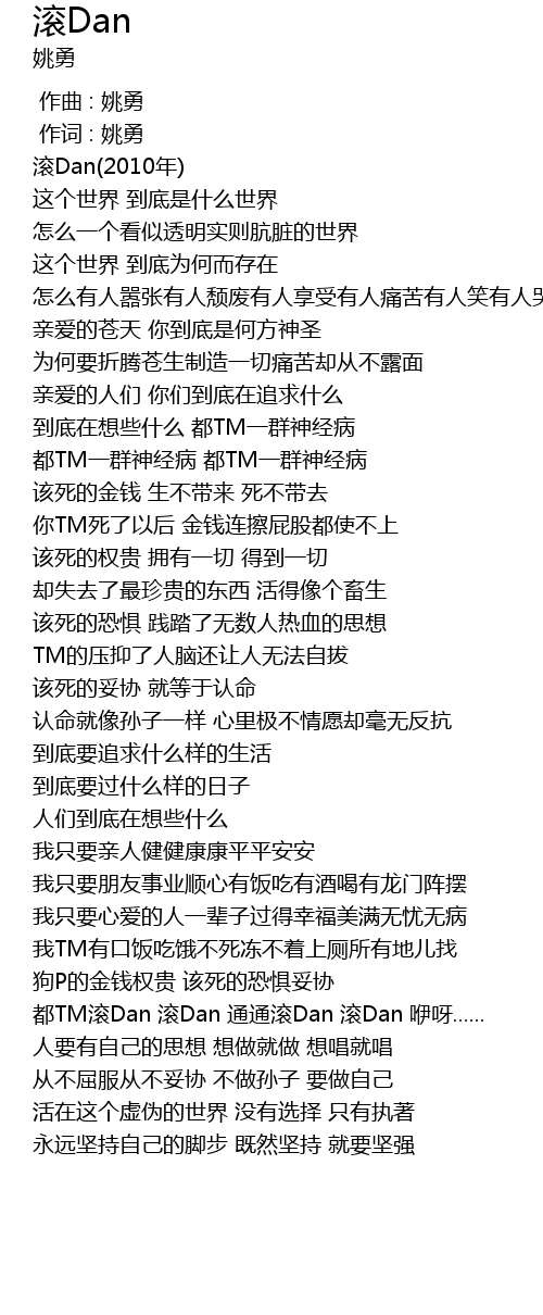 | [02:24.065] | 都TM滚Dan 滚Dan 通通滚Dan 滚Dan 咿呀...... |