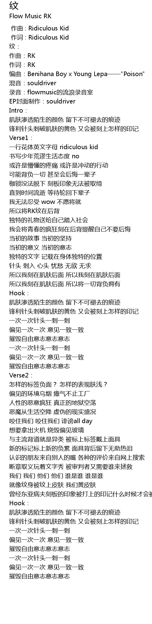 | [00:00.316] | 作词 : Ridiculous Kid |