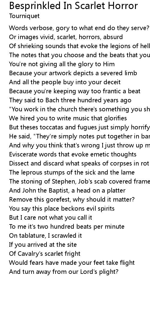 Or images vivid, scarlet, horrors, absurd |