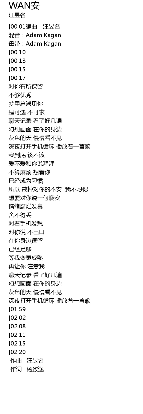 | [00:01编曲:汪昱名 | |