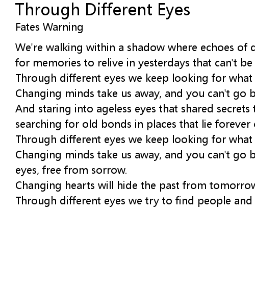 Changing minds take us away, and you can't go back to different times or ageless eyes, free from sorrow. |
