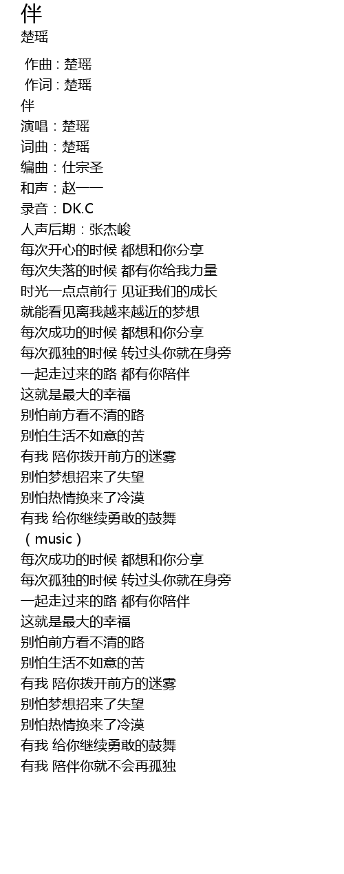 | [00:07.273] | 词曲:楚瑶 |