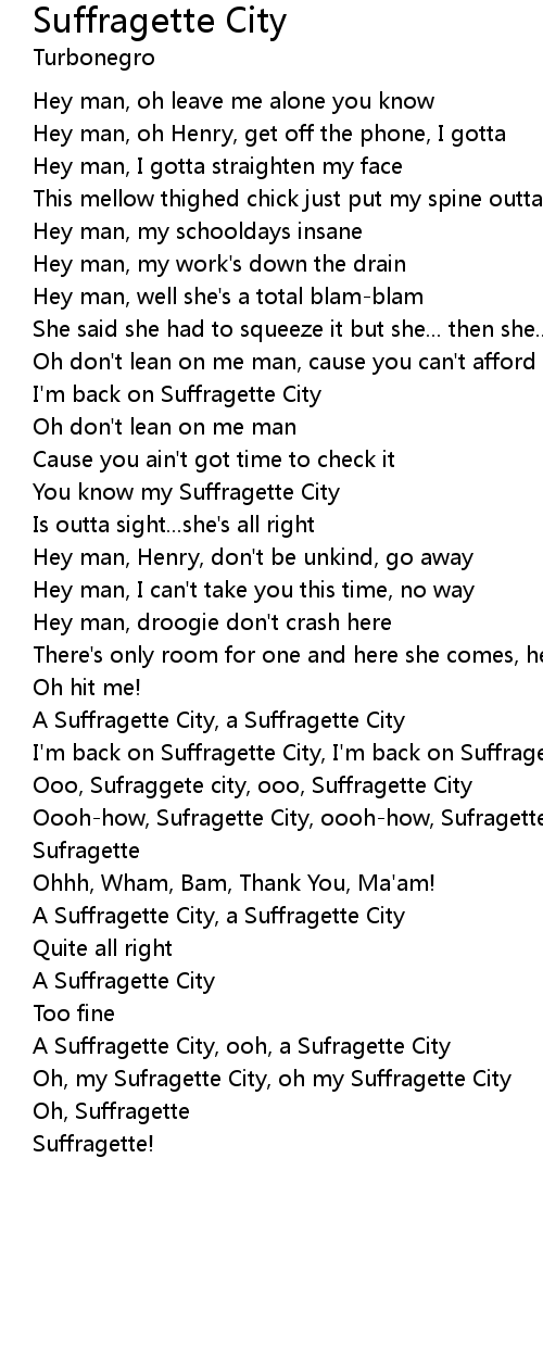 Oooh-how, Sufragette City, oooh-how, Sufragette City, oooh-how |