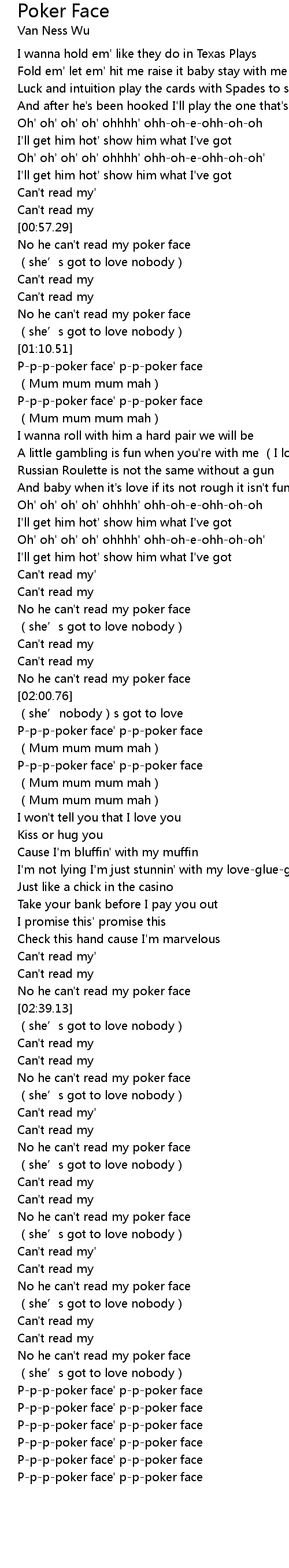 | [01:11.08] | P-p-p-poker face' p-p-poker face |