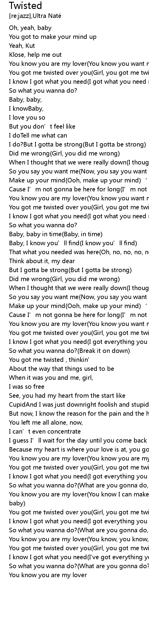 | You got me twisted over you(Girl, you got me twisted, baby) | |