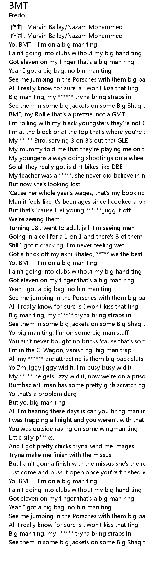 | [00:20.15] | Yo, BMT - I'm on a big man ting |