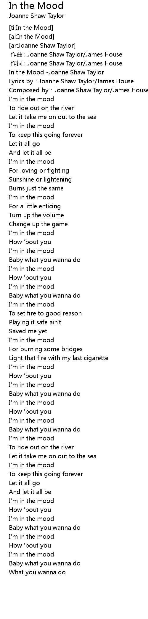 | [00:00.297] | In the Mood -Joanne Shaw Taylor |