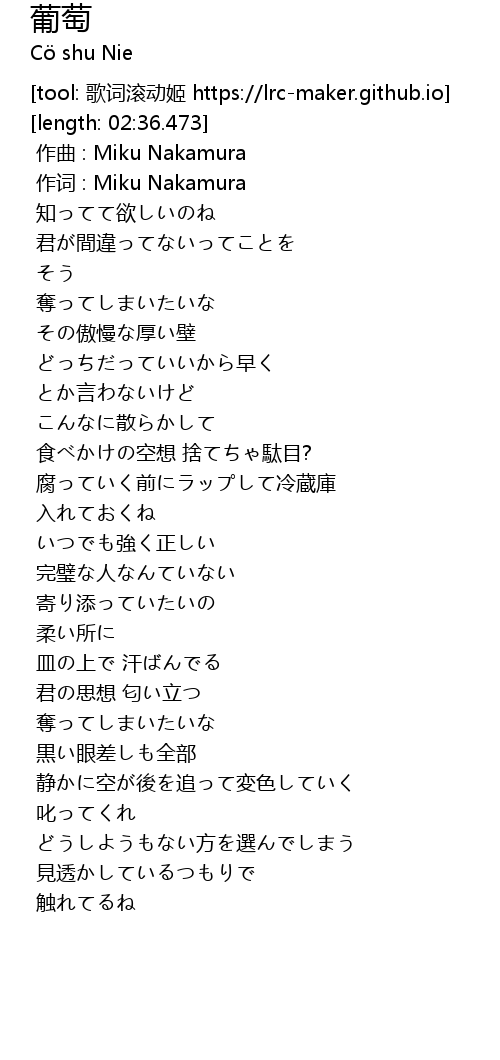 | [00:01.000] | zuo ci : Miku Nakamura |