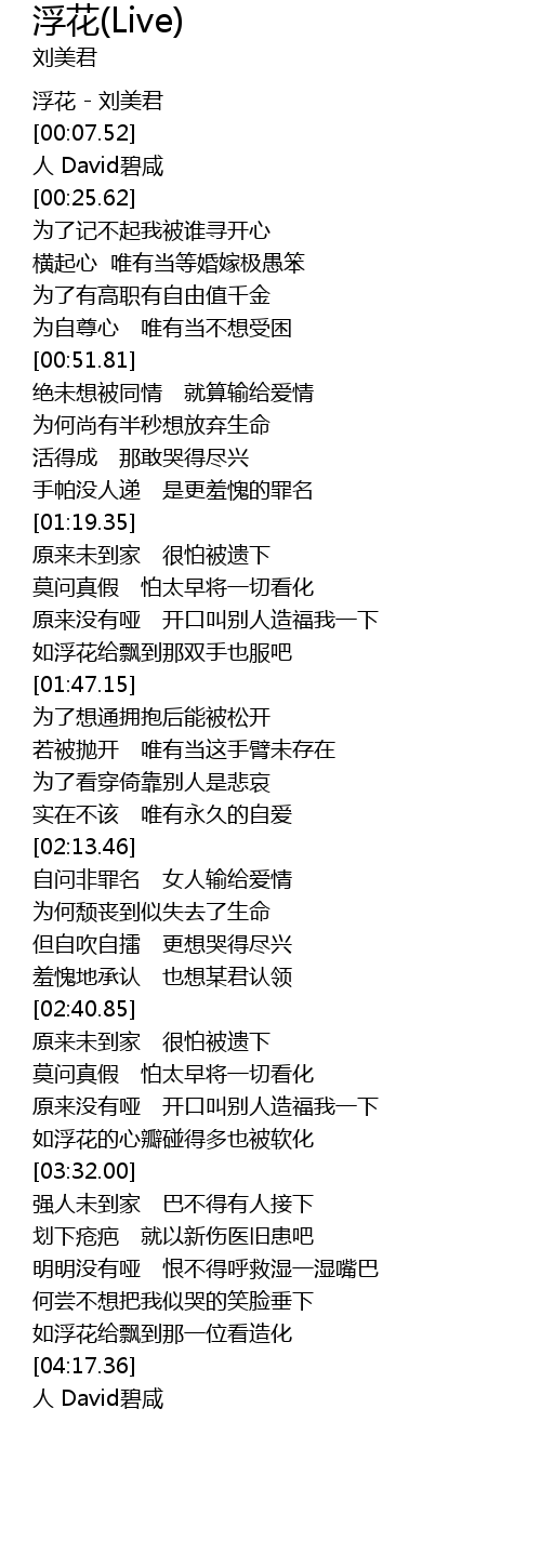 | [04:00.71] | 如浮花给飘到那一位看造化 |