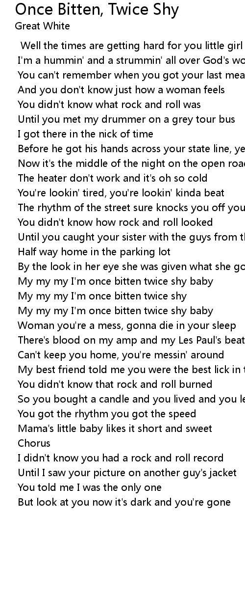 My my my I'm once bitten twice shy |