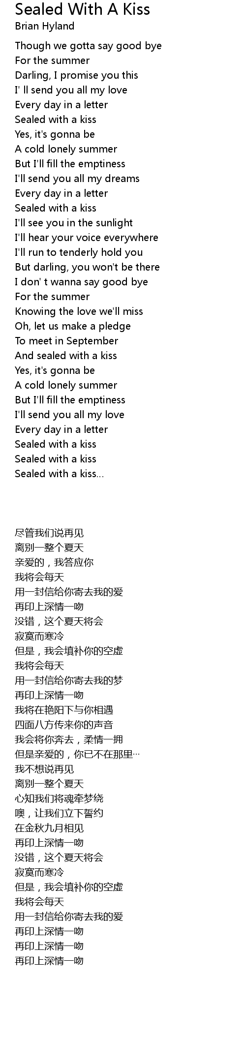 | [01:33.550] | And sealed with a kiss |