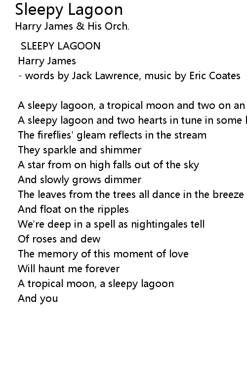 A sleepy lagoon and two hearts in tune in some lullabyland |