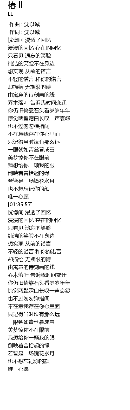 | [00:00.010] | 作词 : 沈以诚 |