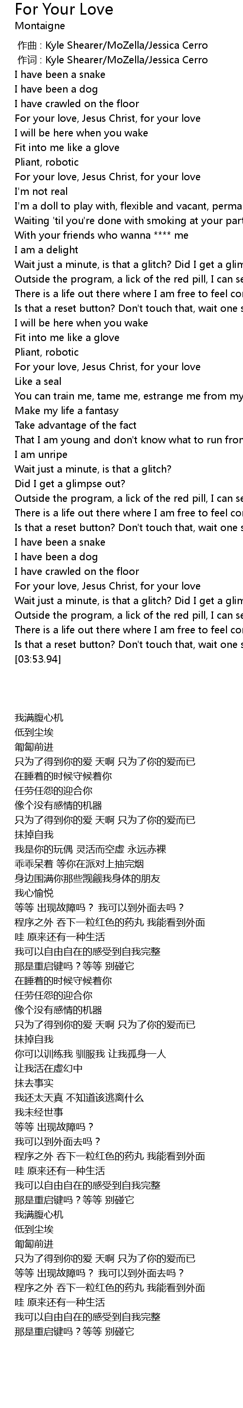 | [03:16.93] | For your love, Jesus Christ, for your love |