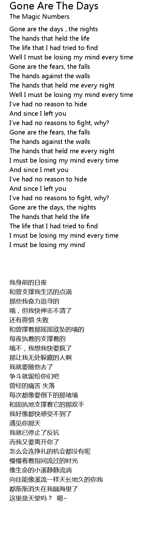 Gone are the days, the nights |