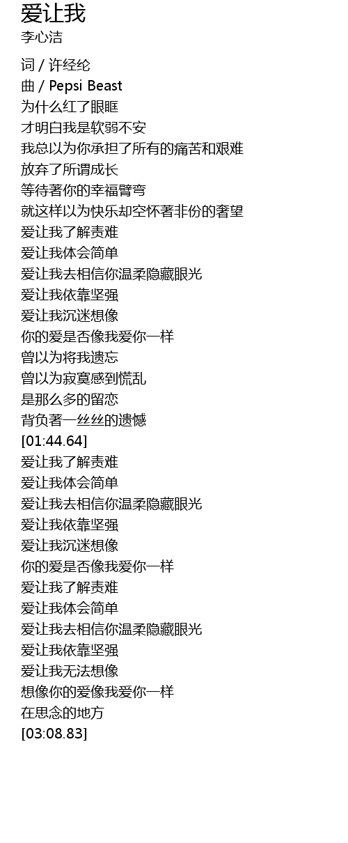| [02:29.91] | ài ràng wǒ liǎo jiě zé nàn |