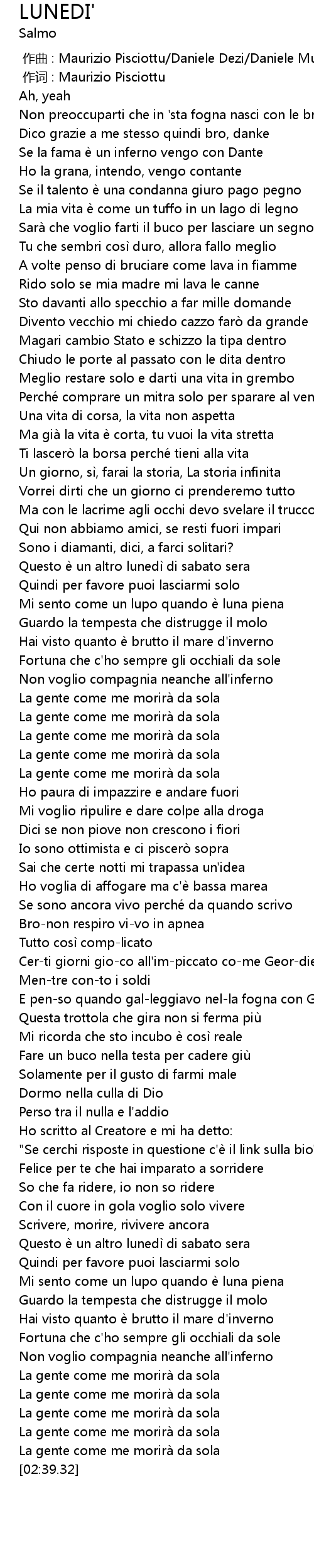 | [02:33.05] | La gente come me morira da sola |