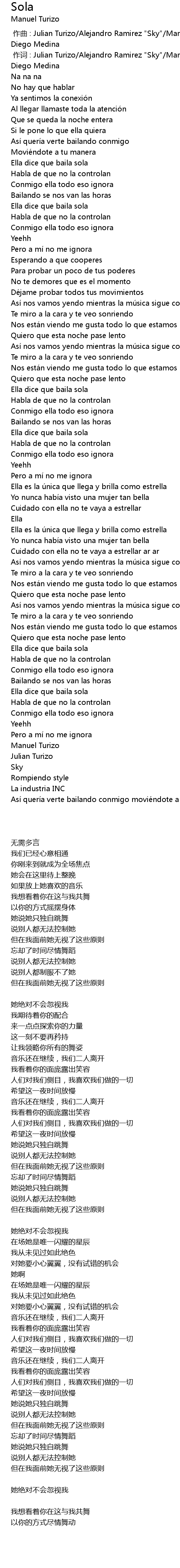 | [00:01.000] | zuò cí : Julian Turizo Alejandro Ramirez " Sky" Manuel Turizo Juan Diego Medina |