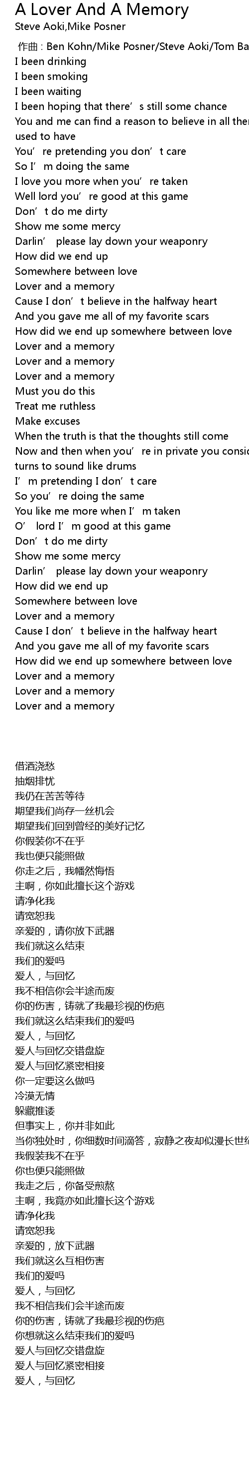 | [00:00.000] | zuo qu : Ben Kohn Mike Posner Steve Aoki Tom Barnes Pete Kelleher |