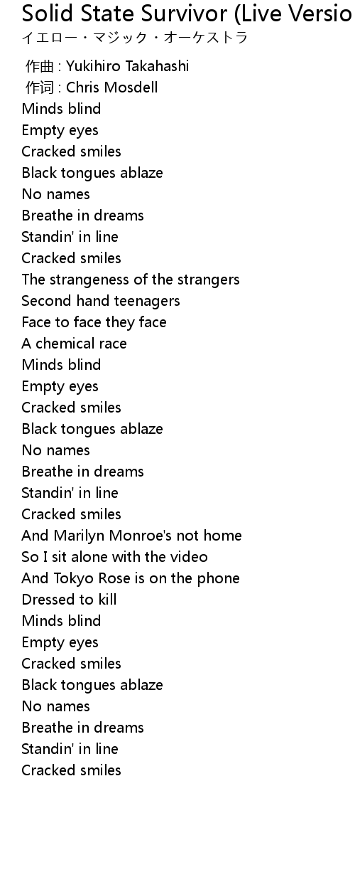 | Song | Solid State Survivor (Live Version) |