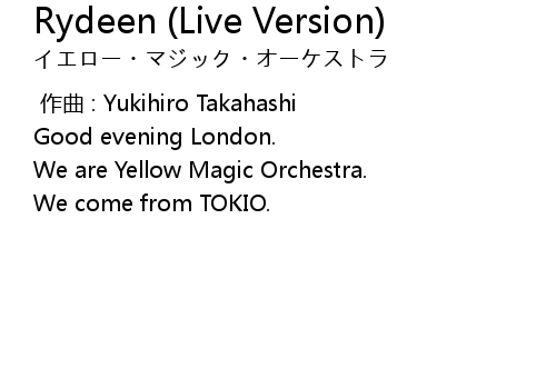 | [00:07.03] | We are Yellow Magic Orchestra. |