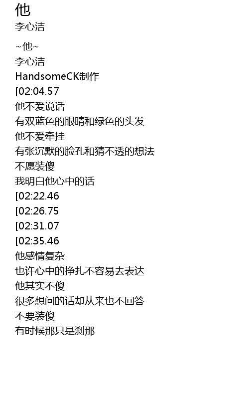 | [00:18.08] | 他不爱说话 |