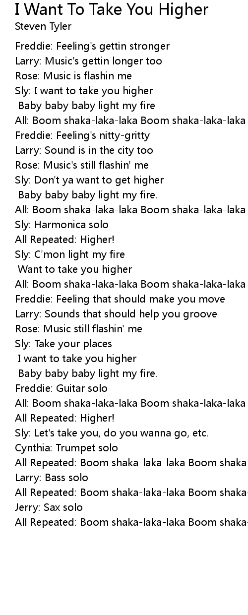 All Repeated: Boom shaka-laka-laka Boom shaka-laka-laka, Higher! |