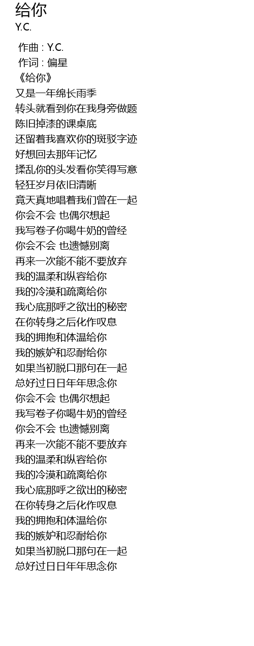 | [03:43.584] | 我的嫉妒和忍耐给你 |