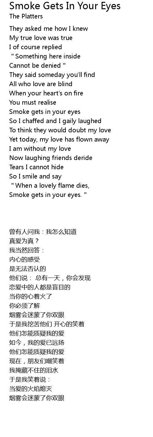 | [02:01.310] | Smoke gets in your eyes." |
