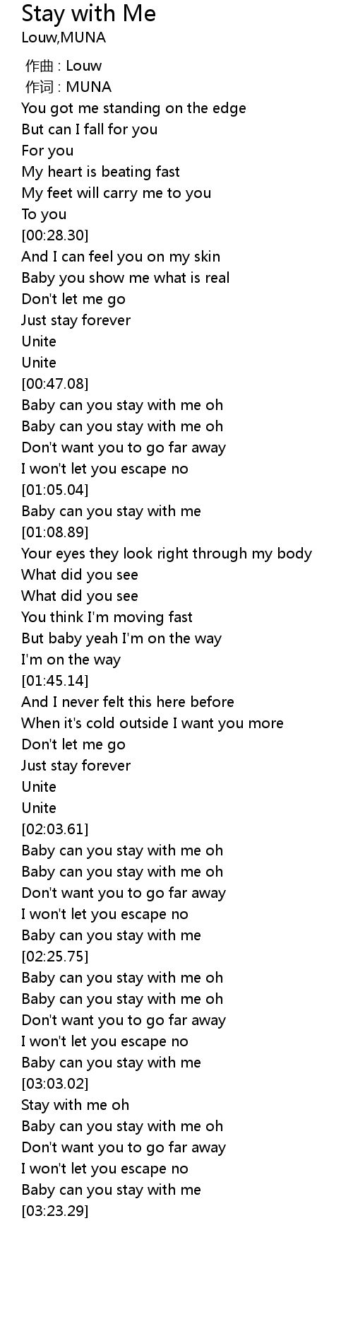 | [03:03.22] | Stay with me oh |