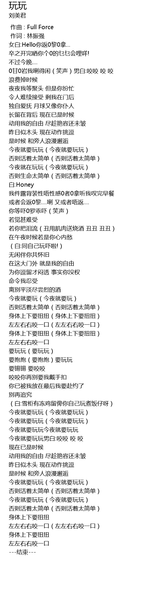 | [01:10.95] | 今夜就在玩玩(今夜就要玩玩) |