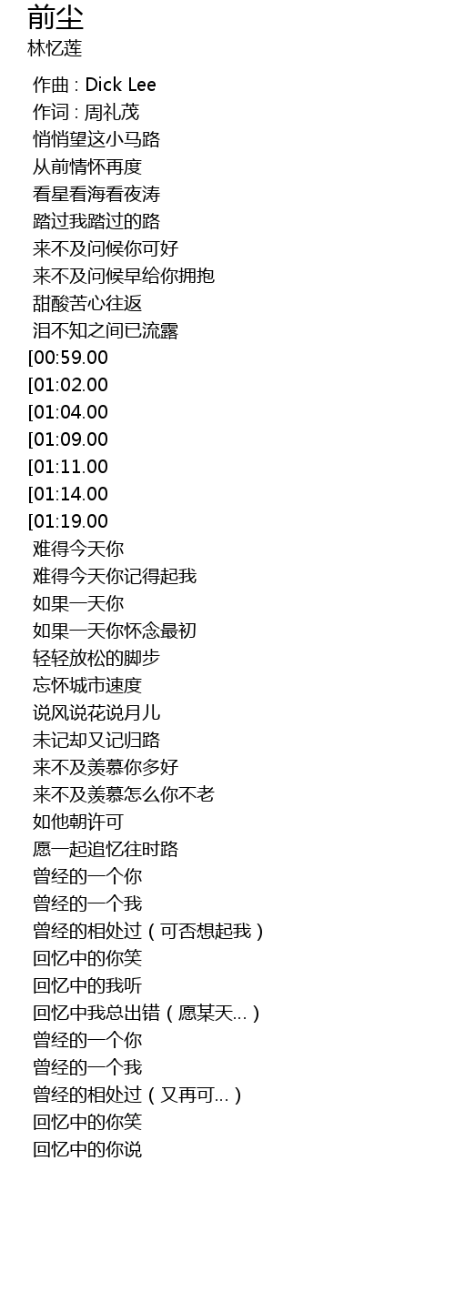 | [00:00.00] | zuo qu : Dick Lee |