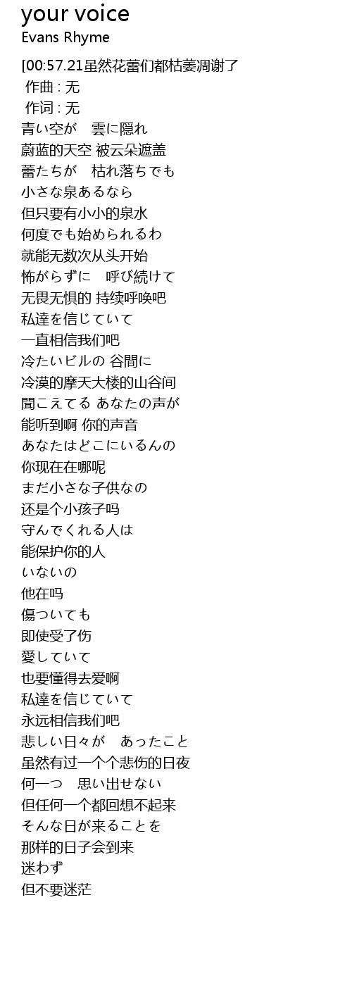 | [01:46.97] | 能听到啊 你的声音 |