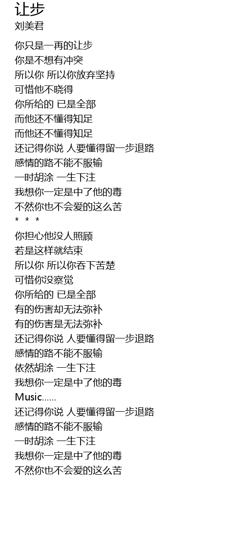 | [00:28.85] | 你只是一再的让步 |
