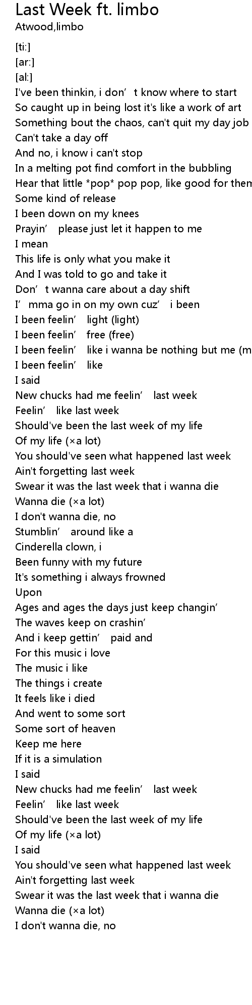 | [01:22.33] | Swear it was the last week that i wanna die |