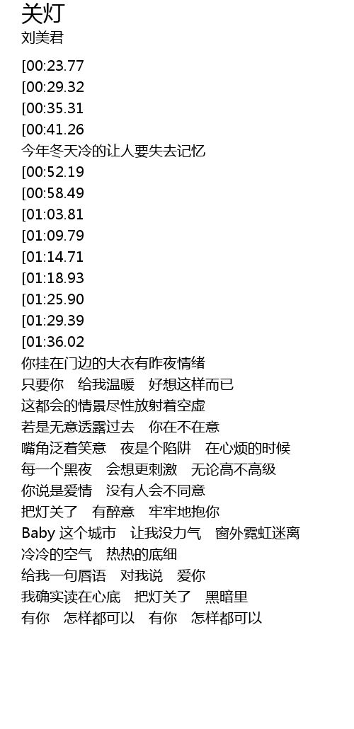 | [02:47.28][01:25.90] | 谁要它无穷无尽 把灯关了 |