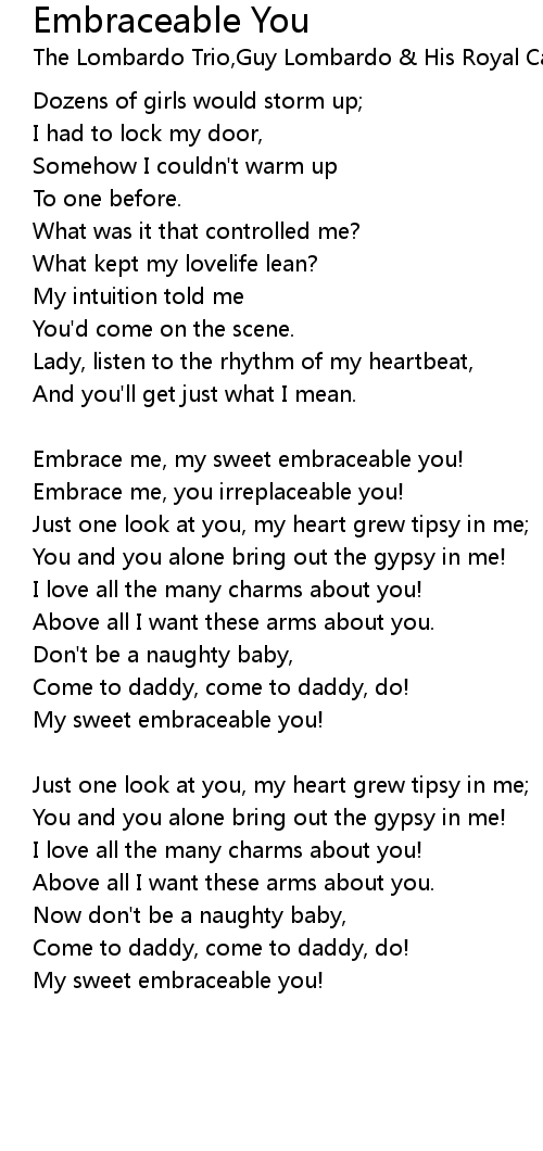 Embrace me, my sweet embraceable you! |