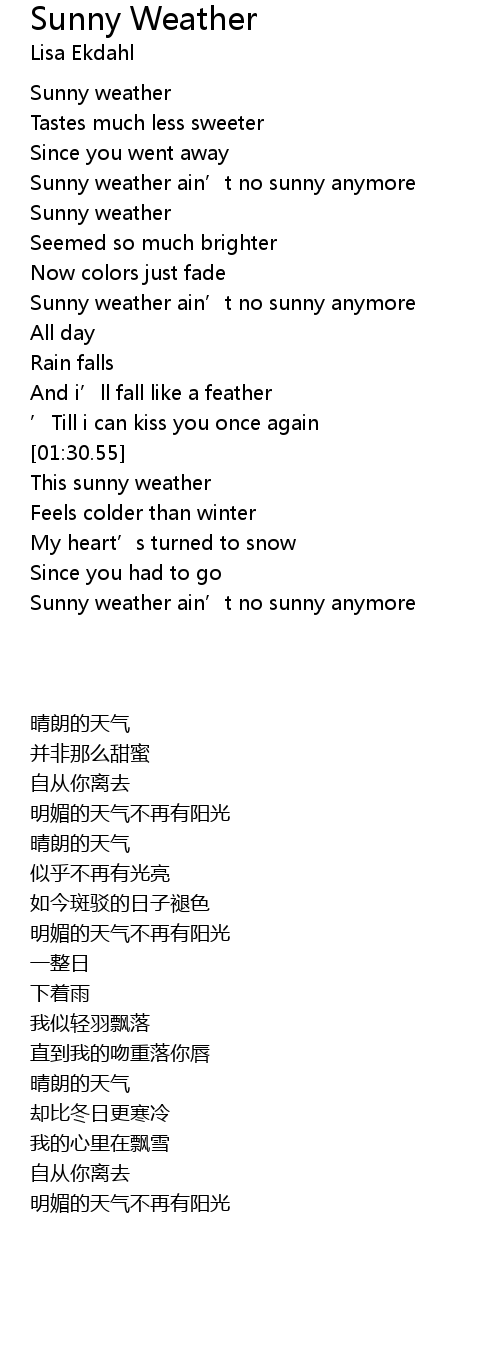 | [01:53.55] | Sunny weather ain' t no sunny anymore |