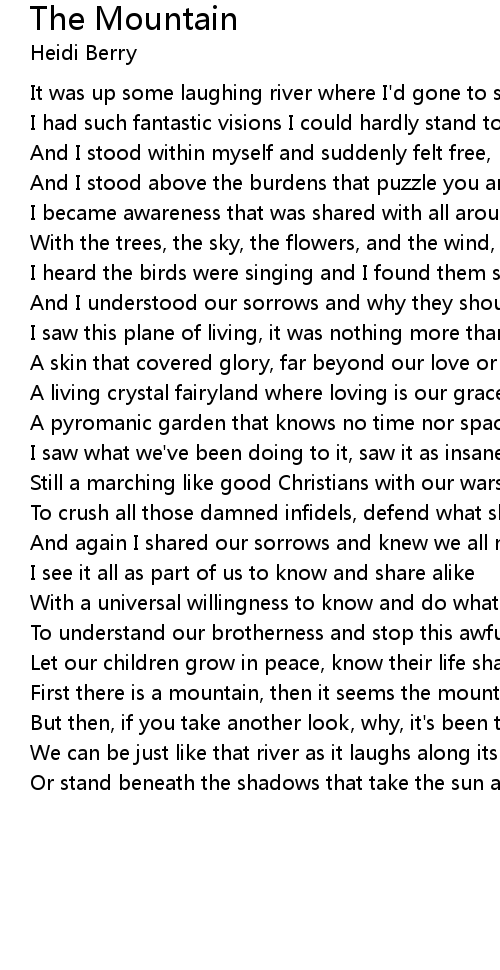 First there is a mountain, then it seems the mountain's gone, |