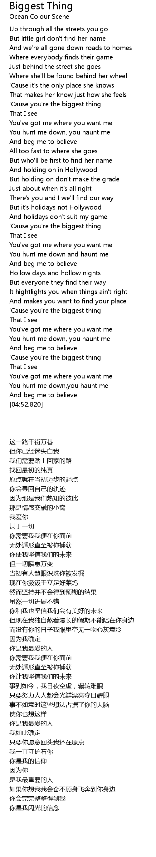 'Cause you're the biggest thing |