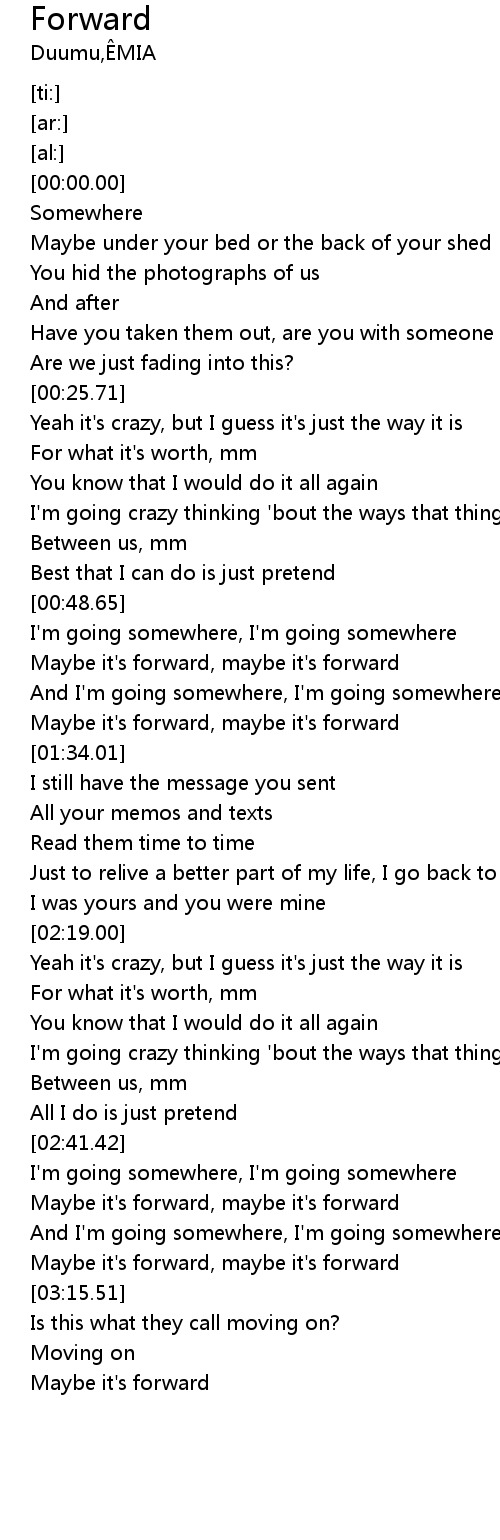 | [01:28.31] | Maybe it's forward, maybe it's forward |