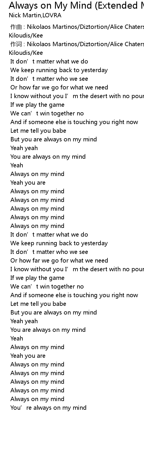 | [01:32.951] | Always on my mind |