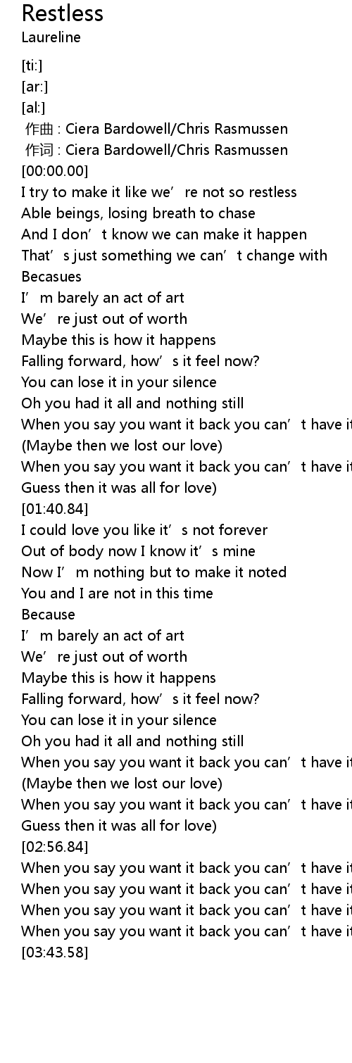 | [00:25.19] | I try to make it like we' re not so restless |