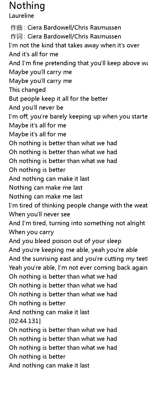 | [00:15.510] | I'm not the kind that takes away when it's over |